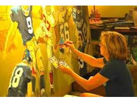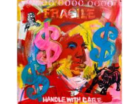 Lynn's style aims for a fresh, modern feel to her work, with bold color that has always been her trademark .An original pop art piece: acrylic mixed media on canvas, 30x30.