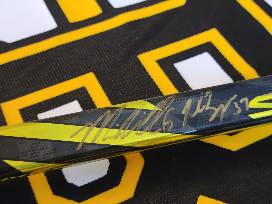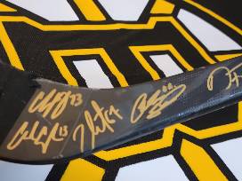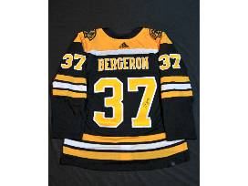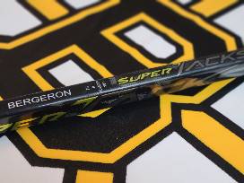 Patrice Bergeron Package -Autographed Jersey, Autographed 8x12 Framed Photo, and Autographed Record Setting 2022-23 Team Stick