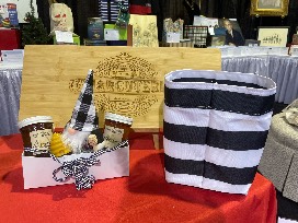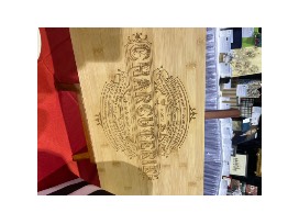 - 23 3/4" x 10" Bamboo Charcuterie Board: This beautiful bamboo charcuterie/cutting board is a perfect size for serving your guests a variety of goodies! Cutout handles at the bottom of the board leaves a solid, no hole surface on top. Visit HSH Custom Works at booth 421