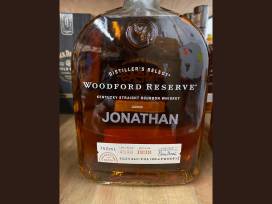 - Two custom-etched bottles with your choice of text and/or logo: one Woodford Reserve and one Gentleman Jack