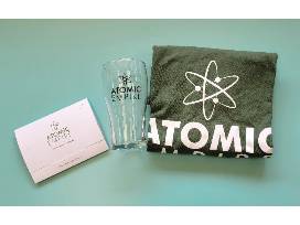 This amazing basket includes: $25 gift card to Atomic Empire, Size Large Atomic Empire T-shirt, and Atomic Empire Pub Glass.
