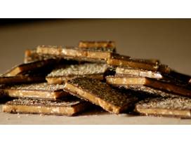 Chapel Hill Toffee begins with a layer of traditional English toffee spread thin and cut by hand into bite sized squares. Each piece is coated on both sides with a top-secret blend of dark chocolates. The smooth layers are finished off with the sprinkling of pecans that gives Chapel Hill Toffee its iconic look and distinctive southern twist!