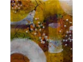 This original work, titled "Chaos and Harmony," is a framed encaustic painting on a wood panel.