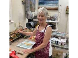 Peg grew up in Seattle and Cleveland, her father was a museum director and so her family was immersed in the art world. Peg graduated from Smith College with a degree in English and Bank Street College of Education with a Masters in Elementary Education. She taught young children in public schools for 38 years. Peg has been painting since 1998, when she began classes at the ArtsCenter in Carrboro and Penland School of Craft in the NC mountains. She now paints in her studio at her home in Carrboro, NC. Peg lives with her husband, Steve, has 4 grown children and step-children and a growing number of grandchildren. She is inspired by her early years in the Pacific Northwest, the landscape of North Carolina, hiking, gardening, her yoga practice, reading, people and the work of other painters.