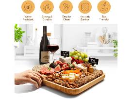 PREMIUM BAMBOO CRAFTSMANSHIP: Set is carved from robust, eco-friendly Moso bamboo. The large wooden cutting boards for kitchen & cheese platter isn't just a sustainable choice - it's a statement piece that adds a touch of elegance and sophistication to your gatherings.