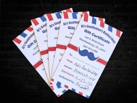 You will receive 5 gift certificates for hair cuts at the Valley's best for men's hair cuts-AJ's Gentlemen's Barbershop.