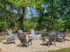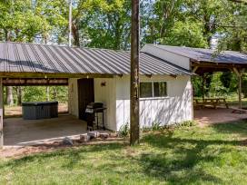 Venture in the backyard to find a river retreat, complete with firepit, propane grill, and a covered outside area with picnic tables, bar area, and TV! The House also features a large flat grassy yard in front of the house perfect for relaxing, yard games, and fun for kids and adults alike!