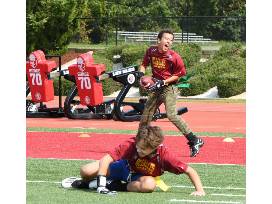 1A 90-minute flag football themed birthday for a group of 8-20 kids. Coaches are high-energy, reliable guys, and have everything you need to play. They'll bring all our equipment, set up the field beforehand, and get the gang ready to play. After taking the group through big warm-up games, we run a couple skill stations and then break up for a big scrimmage.
