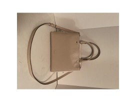 Pebbled leather, two way spade jacquard lining, metal logo 3 compartments, 2 magnetic snap closure and middle compartment with zip, inside one zip and two slip pockets Wear as handbag, crossbody to shoulder bag, removable and adjustable crossbody strap