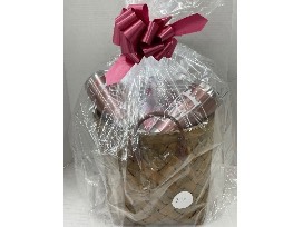 Enjoy this STM custom basket! Basket includes a custom etched St Mary's School logo mirror and two insulated custom STM tumblers!