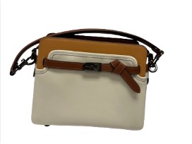 It is a versatile bag that can be worn as a crossbody or on the shoulder. The white/beige and tan color allows you to wear this bag all year long.