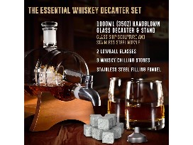 2 Heavy Crystal Whiskey Glasses, 9 Chilling Whiskey Stones & Funnel for Liquor - 1000ml Whiskey Barrel Decanter