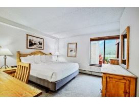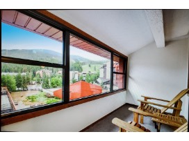 One bedroom condo with a full size kitchen, fourth floor at Village Square located in the Center Village of Copper Mountain Resort. There are two main chairlifts (Eagle and Flyer) within walking distance of the building. The bus/shuttle stop to take people to other areas of the resort is right in front of the building. The condo can accommodate up to 4 people. The bedroom has a king size bed and a walk-in closet. The sofa in the living room folds out into a queen size bed. There is an enclosed balcony that looks out onto the mountain. There are lockers to store skis on the first floor along with a whirlpool and sauna for guests staying at Village Square to unwind after a long day on the slopes.