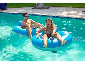 Why just float when you can drive? The Motorized Tube Float will revolutionize the way you relax (and play) at the pool. This unique float features a 66-Watt motor with 3-blade propeller to transport you around the pool or lake. Simply use the joystick controller to go forward, backward, left, right or spin 360 degrees. Features heavy-duty PVC construction, built-in safety handles and cup holder. Max weight capacity 250 lbs.
