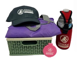 Basket includes: Gift Certificate for Dance Lessons, studio bag, hat, mirror, chapstick, water/White Claw coozie.