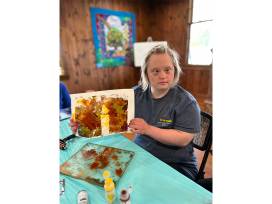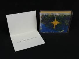 2These cards were created by some of our Rainbow Young Adults. This design features a bright yellow star on a deep blue background. Hand-crafted using Gelli Pad alcohol ink printing by Bradley Grose. Each box includes 10 cards and 10 metallic gold envelopes.