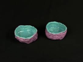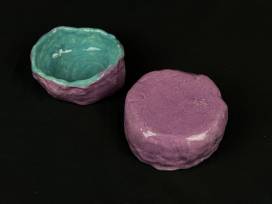 0This set of 2 bowls was handcrafted by Rainbow participant Karen Adams during Creative Arts time. This pretty purple pair with aqua interior will be a great addition to your assortment of soup bowls or it makes a perfect gift!