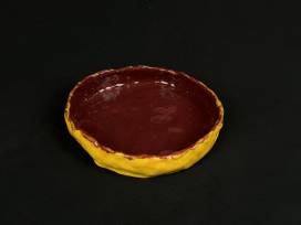 0This plate was handcrafted by Rainbow participant Ronda Blanchard during Creative Arts time. This unique plate features a maroon interior with golden yellow exterior. Bring it home today!