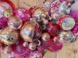This handmade wreath features only vintage glass ornaments. Includes the storage container!