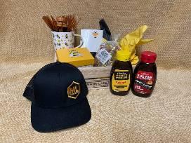 Check out this Honey of a crate! Products from the Mann Lake store include, two jars of honey BBQ sauce, Honeybee coffee mug with honey stir sticks in a bee box, honey candy, plus a Mann Lake bee hat! See more bee products at: