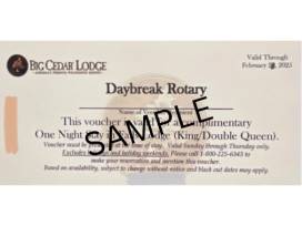 Gift certificate for a One Night Stay in Falls Lodge in Ridgedale, MO.