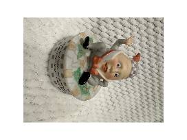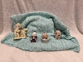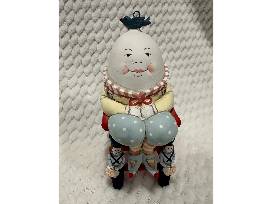 Gift basket with baby blanket and 4 Humpty Dumpty figurines.