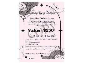 All guests will receive complimentary horderves & cocktails & swag bag. Hostess receives a $25 gift card and 25% OFF entire purchase and guests receives 15% OFF their entire purchase.