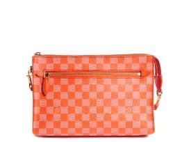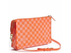 Damier Couluer canvas was released in bright colors in more easy to carry styles. The Modul Crossbody bag is perfect for summer in a bright Piment (orange) color. This adorable bag has an exterior zip pocket a single long leather strap. Remove the strap to carry this bag as a clutch.