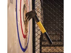 You and your mates will spend 1 to 1.5 hours becoming intimate with a 1.5lb piece of whirling wood and metal as you learn, practice, and then finally square off toe to toe in a group tournament that will result in the crowning of an Axe Throwing Champion.