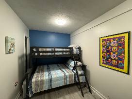 - Sleeps 9 guests with 1 King, 1 Queen, two twins, and a bunk bed.