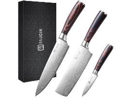 - Three (3) piece PAUDIN Kitchen Knife Set, with Ultra Sharp Blade & Wooden Handle