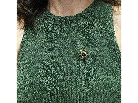 118K Gold Turtle Pin with Green Tourmaline