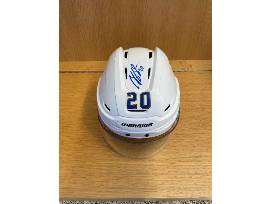 Bid on this #20 Brandon Saad autographed helmet. This helmet does not feature the Blue Note decals on the sides.
