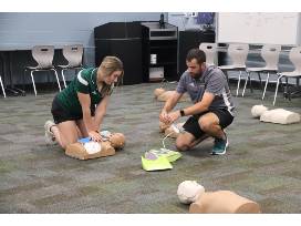The Blessed Trinity athletic training staff will be present for the camp and take great pride in the quality of instruction. Students will have an opportunity to learn and practice topics such as first aid, taping, splinting, bracing, and managing life-threatening injuries. All campers will also be given the opportunity to become CPR and AED certified through the American Red Cross. Students can also expect to hear from a variety of sports medicine professionals in the Atlanta area including doctors, PA's, PT's, nurses, and athletic trainers at all levels of sports.