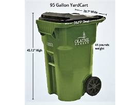 Have you finalized your yard project for this fall yet? Get ideas and inspiration with four (4) tickets to the Home + Remodeling Show, Oct. 27-29, 2023 at the Overland Park Convention Center. Package also includes one (1) bag of Loveland Renovator high nitrogen slow-release fertilizer and Snowman winter fertilizer and root builder from The Grass pad along with a Green Yard Cart from the City of Olathe. Start your outdoor clean-up without yard bags this year! With the City of Olathe Yard Cart, you simply put your leaves, grass, and landscaping materials in the cart and the City of Olathe will pick it up at your curb on your regular trash day for no additional charge. This 95-gallon container holds yard waste equivalent to 6-7 bags or ~330 lbs. The city will deliver this cart to a residential home within Olathe city limits.