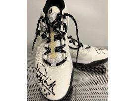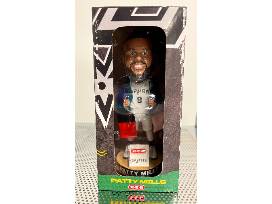 Basketball fans can bid for former Spurs Player Patty Mills signed Under Armour sneakers and a Patty Mills Spurs bobblehead.