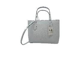 DETAILS 8.86"h x 11.5"w x 4.73"d handle drop: 5.5" strap drop: 22" refined grain leather foil embossed logo unlined interior: middle zip compartment open top with center compartment closure