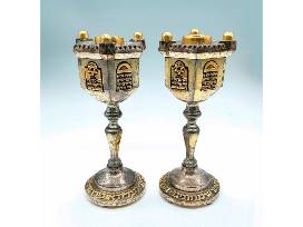 Pair of Frank Meisler Ornate Judaica Shabbat Candle Holders