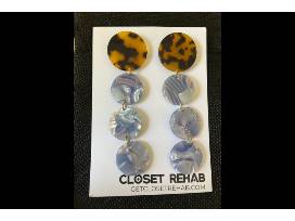 1Closet Rehab offers super cute and fashionable jewelry online. This item includes acrylic Dot Drop Earrings in Blue with Tortoise Stud and Pearly Tortoise cuff bracelet. These unique, colorful, and lightweight acrylic earrings are handmade in Pittsburgh, PA, inspired by shapes, textures, and colors-creating maximalist statements for the minimalist closet. Made in the USA.