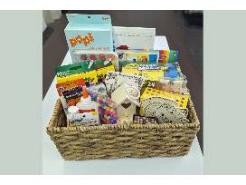 This is the perfect basket of goods for a lover of the arts! The basket includes fine arts and crafts materials, including watercolor paints, paper and brushes, Model Magic, air-dry clay, pom-poms, pipe cleaners, a friendship bracelet-making kit, and much more!