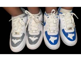 Your child can show their ultimate "House" spirit with these hand painted Nike "House" Air Force 1's! Customization will include your student's house logo and color. Other personalizations are available by request (student's names, colored laces)