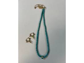 Beautiful Turquoise Beaded Necklace and Gold Earrings - Everyday statement pieces!