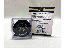 Bid now on this autographed, playoff game used, goal puck scored by Wild #90 Marcus Johansson (2). This puck was scored at 2:14 of the 2nd Period of the Wild vs. Dallas Stars game 4/21/23 at Xcel Energy Center assisted by #12 Matt Boldy (2). Wild Win 5-1. Puck comes with acrylic case and Wild Certificate of Authenticity with tamper proof serial number.