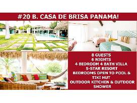 Six (6) days and six (6) nights of luxurious accommo- da- tions for 8 Casa De Brisa is a gorgeous modern villa nestled in the five-star resort of Buenaventura on Panamas Pacific Coast. Each of the 4 bedrooms features its own bathroom and opens to the oversized pool and large tiki hut. Perfectly situated for multiple couples or a large family. Amenities include an outdoor kitchen, outdoor shower, commercial kitchen, wifi and tv. Guests have access to all The Buenaventura Resort has to offer. Fishing excursions, The Corotu Spa, and 18-hole Jack Nicklaus designed golf course, are available.... BUT NOT INCLUDED. Airfare, transfers and gratuities NOT INCLUDED. Contact Kerry Newton at [email protected] to book your dream vacation. Trip must be taken within 18 months of purchase.