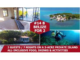 The perfect vacation for the adventurous couple. Blue Reef Island Resort is a 3-acre island that is home to just 5 cabanas, all overlooking the Caribbean Sea. Each cabana has a/c, inside and outside showers and large veranda doors that open up to the views of the Caribbean. The island has 2 restaurants and bars, a private pool, spa and hot tub overlooking sunset views of the Maya Mountains and a spa. This 7-night all-inclusive package for 2 includes one cabana, reef fishing, scuba diving, snorkeling, freediving, spear fishing, kayaking, paddle boarding and island hopping. At the end of a fun day on the water, the chef will prepare your catch of the day! All meals, local beers and liquor, fishing equipment, diving equipment and laundry services are all included. NOT included are flights, trolling the outer reef for billfish, spa and tips. See more at www.bluereefisland.com. Contact [email protected] to book your trip on a mutually agreeable date within 18 months.