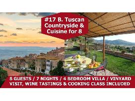 Eight guests spend 7 nights in one of the stunning 4 Bedroom villas in the heart of Tuscany. The Villas all have a private pool and are located throughout the Tuscan countryside and close to the famous hilltop town of Cortona. Included is a visit to the vineyard and cellar followed by a fabulous lunch at a winery with wine pairings. Also included is an evening cooking class right in the comfort of your villa. Learn the secrets of fresh home-made pasta, mouth-watering sauces, Tuscan meat dishes and desserts, all from a local Chef. Tuscany is all about the wine, food, and wonderful people. This experience brings all of those elements together for an unforgettable week in Italy! Includes concierge travel/booking services (airfare not included). Certain restrictions apply. You will receive an email from travel@givebackxp. com within the next 10 business days on trip redemption instructions and booking details.