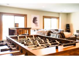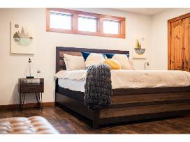 Choose between an upscale, mid century modern chalet or an rustic elegant ski lodge - it's up to you! Both homes feature 5 bedrooms and can sleep 12 comfortably. The lodges are stocked with family-friendly amenities including a brand new hot tub with direct mountain views, fire pit, full size game room (with pool table, foosball table and more), grill, etc.!