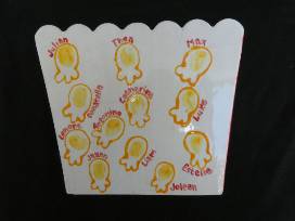 Sometimes life with kids is a circus - fun, energetic, and delightful! Remember this special year with a circus themed popcorn bucket, personalized with fingerprints from the Kindergarten classes.