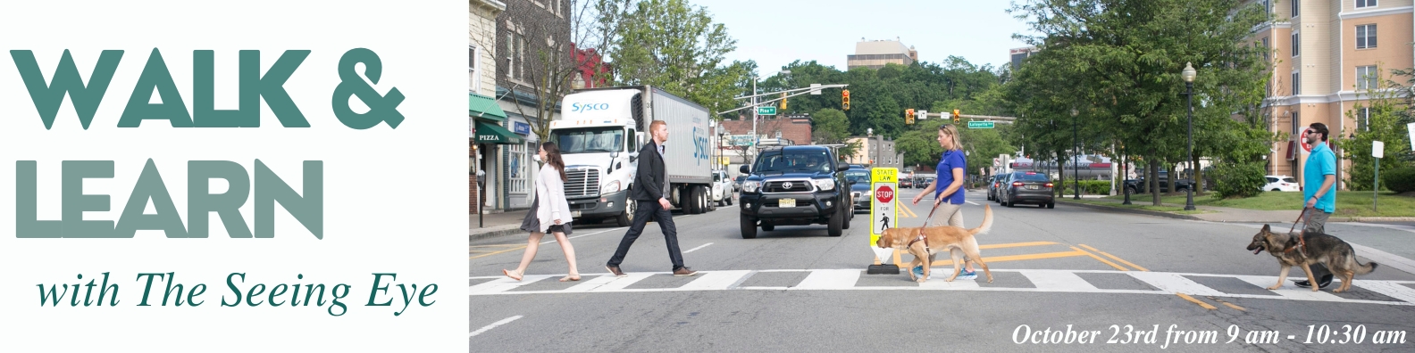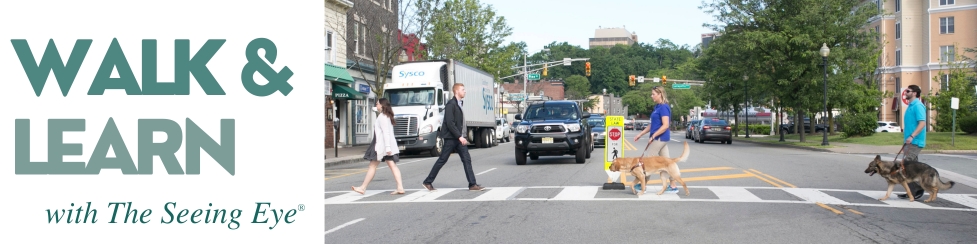 Learn all about how Seeing Eye dogs are trained on the streets of Morristown. Each program begins with a brief presentation and tour at our downtown training location at 14 Maple Avenue. Participants will then take a walk through the streets of Morristown and learn how Seeing Eye dogs guide their handlers safely. The walking distance is about 1- mile and is appropriate for ages 12+.