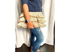This over sized clutch can hold all your essentials and for the evening. The neutral beachy coastal tones are turned up just a little with the addition of ruffles and a hint of shimmer for that extra glam.